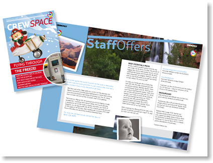 Working on Crewspace, an internal brochure aimed at keeping Crew staff informed.